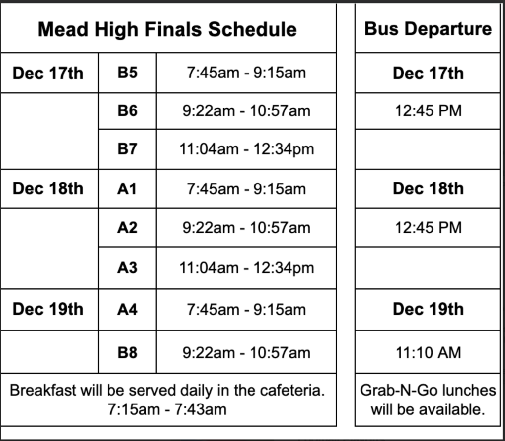 Our students have been working hard to prepare for final exams. Thank you for your ongoing support as we close out the semester. Please don’t hesitate to reach out if you have any questions or celebrations to share. Next week’s schedule is below: